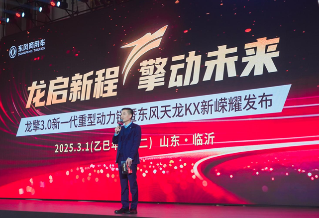 返回龙启新程,擎动未来。 3 月 1 日,东风商用车龙擎 3.0 新一代重型动力链暨东风天龙 KX 新嵘耀在物流之都山东临沂上市。东风商用车有限公司总经理张小帆,党委书记、副总经理郑华,副总经理、技术中心中心长吴怀主,与来自全国的经销商伙伴、大客户代表、媒体嘉宾等共 300 余人,一同见证龙擎 3.0 动力链实现国产自主动力领域的历史性突破,为商用车全场景时代注入高效智慧的龙擎能量。